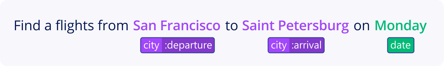 Imagine your service may find tickets only from New York, San Francisco, and Saint Petersburg. What if the user says "Find tickets from Los Angeles"? The system will not find this city in the message, because it’s unknown. But you want to extract this entity value anyway. We have a solution to that.