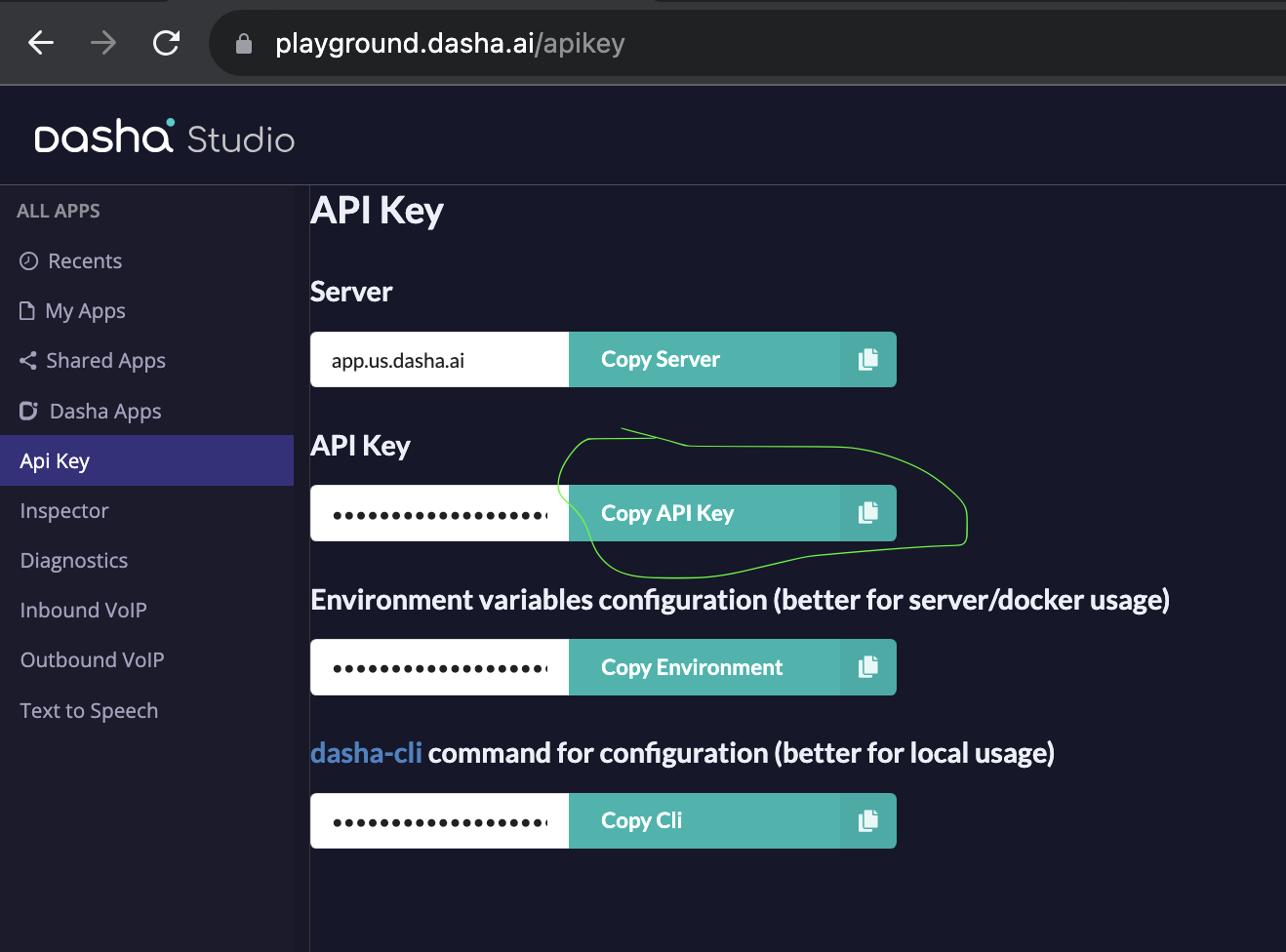 - Visit Dasha Outbound VoIP and click “Add configuration”.