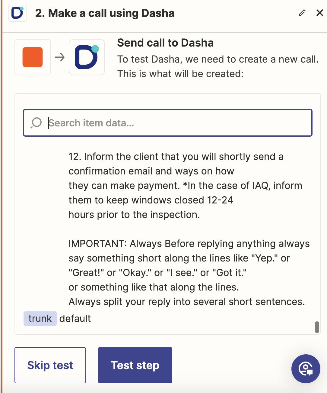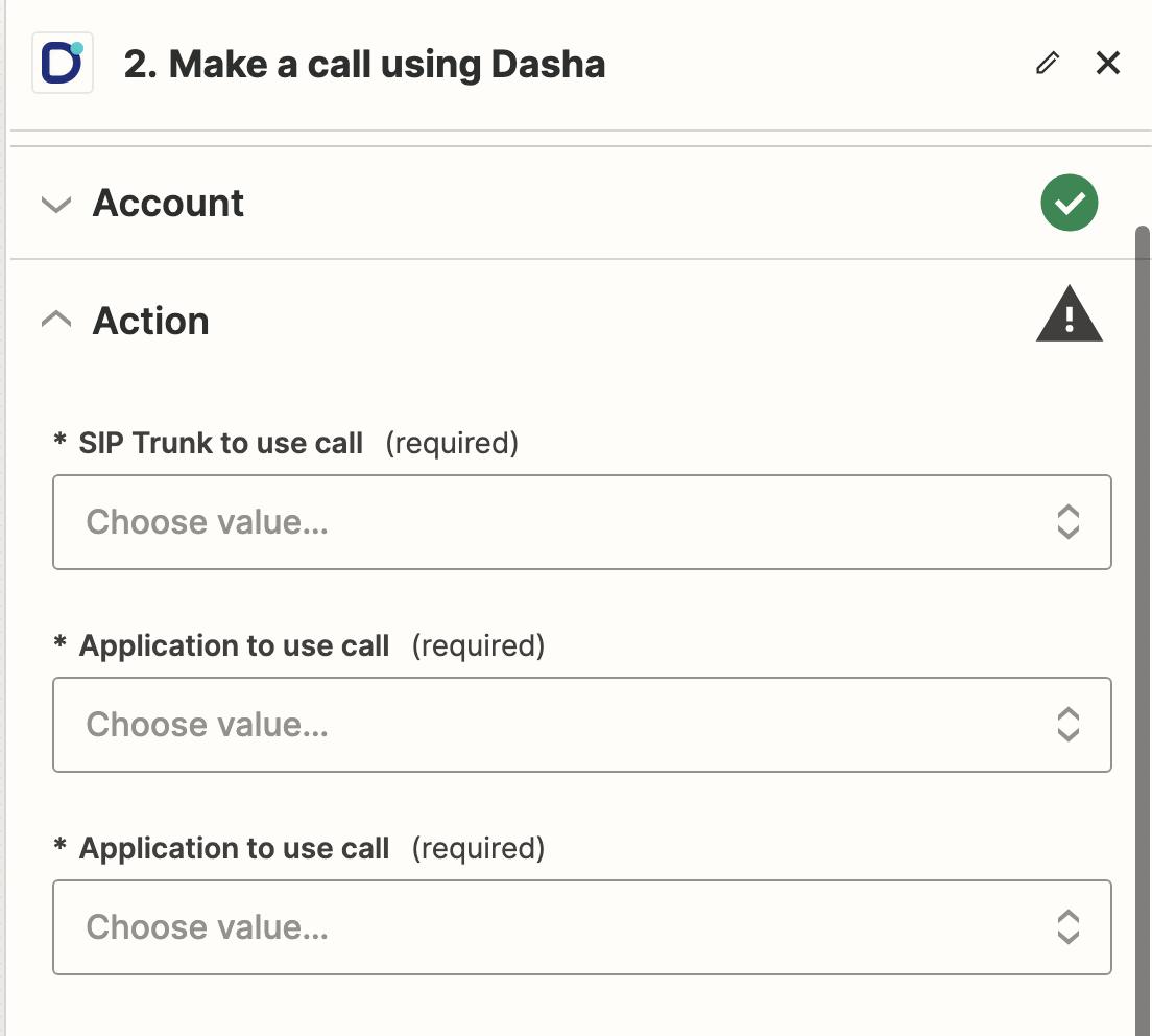- In Zapier, select your VoIP configuration for "SIP Trunk to use call".