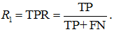 m is the number of objects in the sample, and "what percentage of class 1 the algorithm classified as positive", i.e. True Positive Rate: